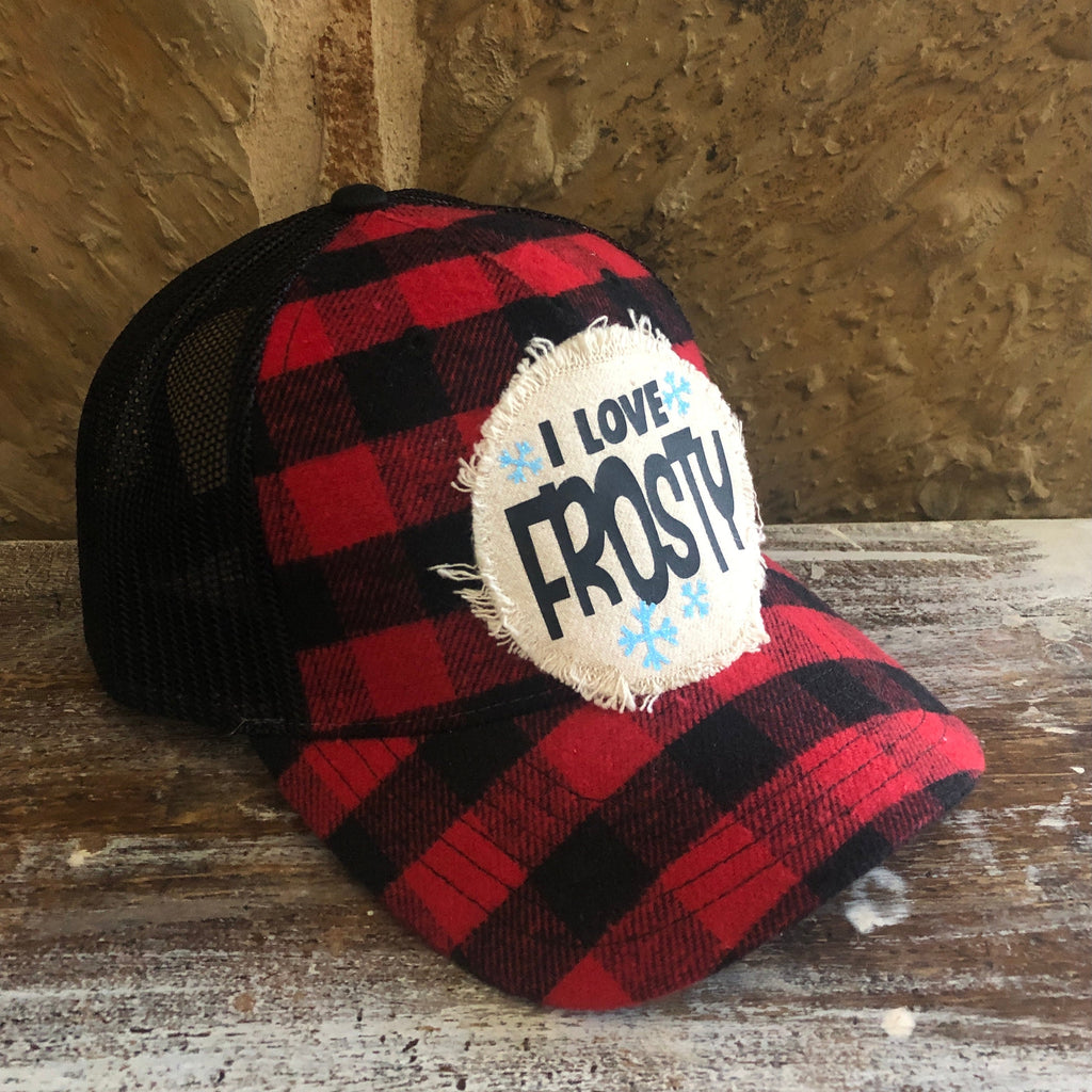 BohoGroove “I Love Frosty” Hat – Christmas Holiday Snapback Trucker | Buffalo Plaid Festive Baseball Cap