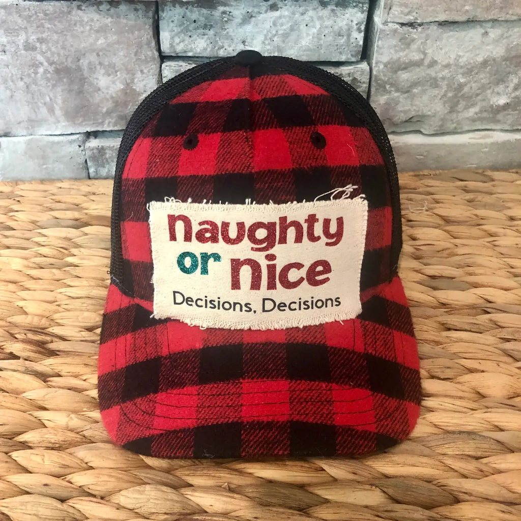 BohoGroove “Naughty or Nice” Hat – Christmas Holiday Snapback Trucker | Buffalo Plaid Festive Baseball Cap