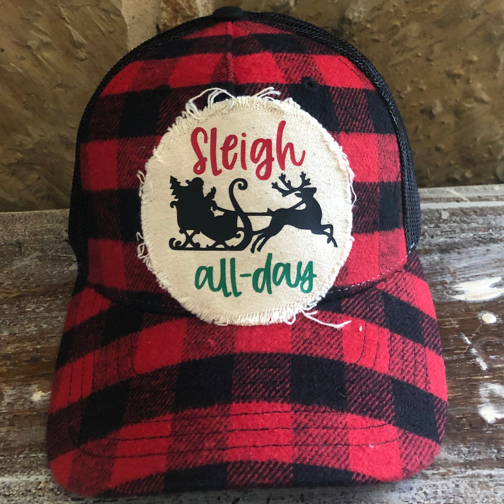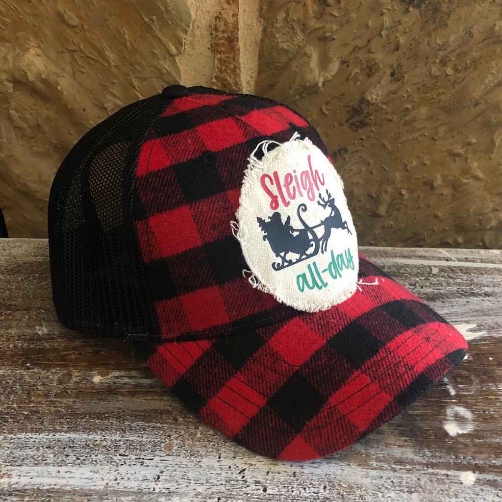 BohoGroove “Sleigh All Day” Hat – Funny Christmas Holiday Snapback Trucker | Buffalo Plaid Festive Baseball Cap