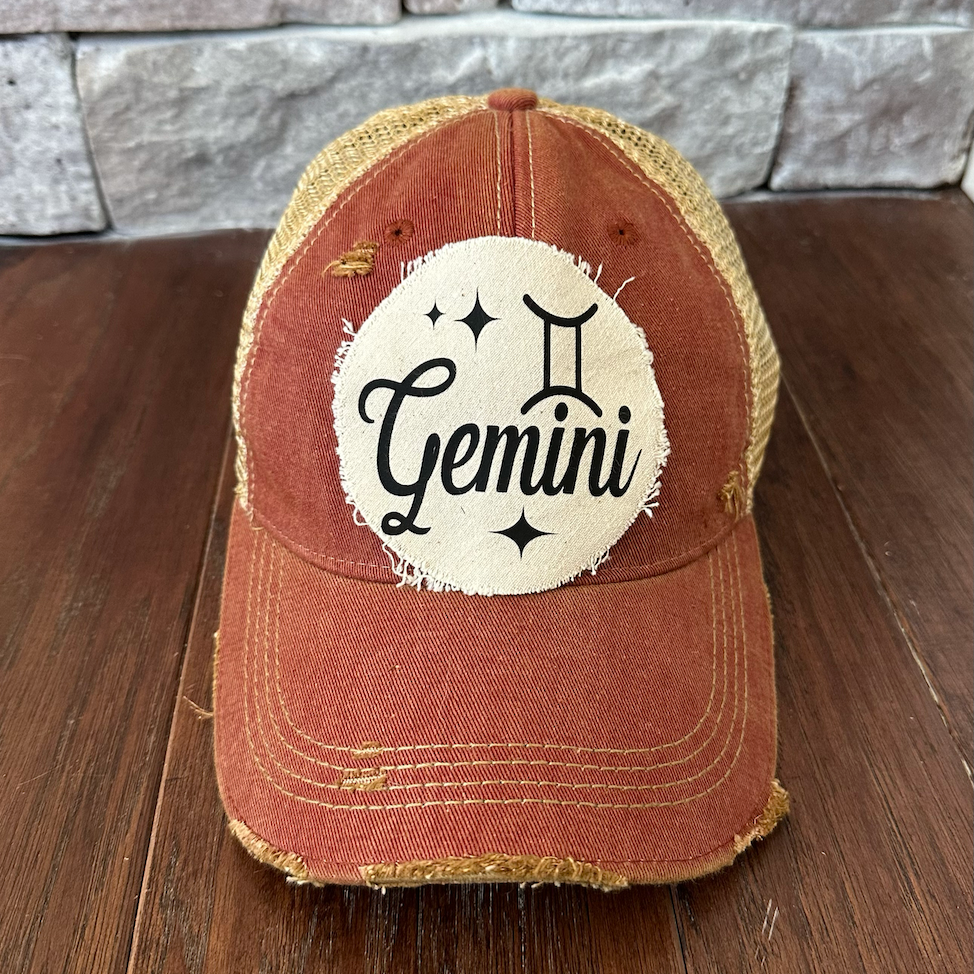 BohoGroove “Gemini” Hat – Zodiac Astrology Snapback Trucker | Vintage Distressed Horoscope Baseball Cap